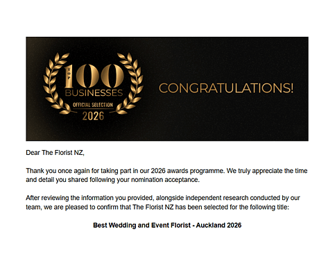 I have some incredibly exciting news to share, I’m absolutely thrilled (and still a bit in shock!) to announce that I was named Winner of the Best Florist – North Island and Best Florist – New Zealand categories at the New Zealand Wedding Vendor Awards! 🌸🏆
